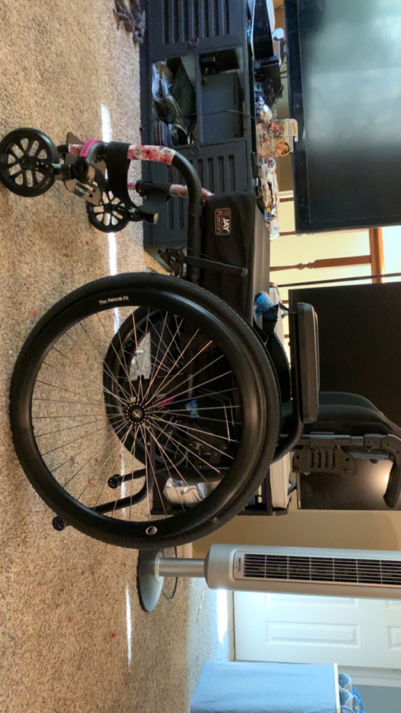 I had an Amazon DRIVE wheelchair for a while before I got my custom one. It got the job done, but not well. A custom chair has allowed me to live my life comfortably, and encouraged me to leave the house more often than I would if I was trying to walk, or using my old wheelchair. If you can afford a custom chair, if your insurance covers it, if you feel you need one, I encourage you to do so! Mobility aids are a journey and it’s okay to try one out, even if it ends up not suiting your needs! And remember kids, most people don’t *want* to be in a wheelchair-it makes life more difficult because things are rarely made with us in mind. If you *want* a wheelchair, you probably need one. You don’t have to ask, “Can I use this for pain/exhaustion/fall risk/etc. issues?” The answer is do whatever you want forever! If you try a chair and it ends up not being the mobility aid for you, see if there is someone nearby with similar measurments that you could maybe donate it to! Or, if you have a progressive/degenerative condition, you could keep it for when/if you grow to need it.
